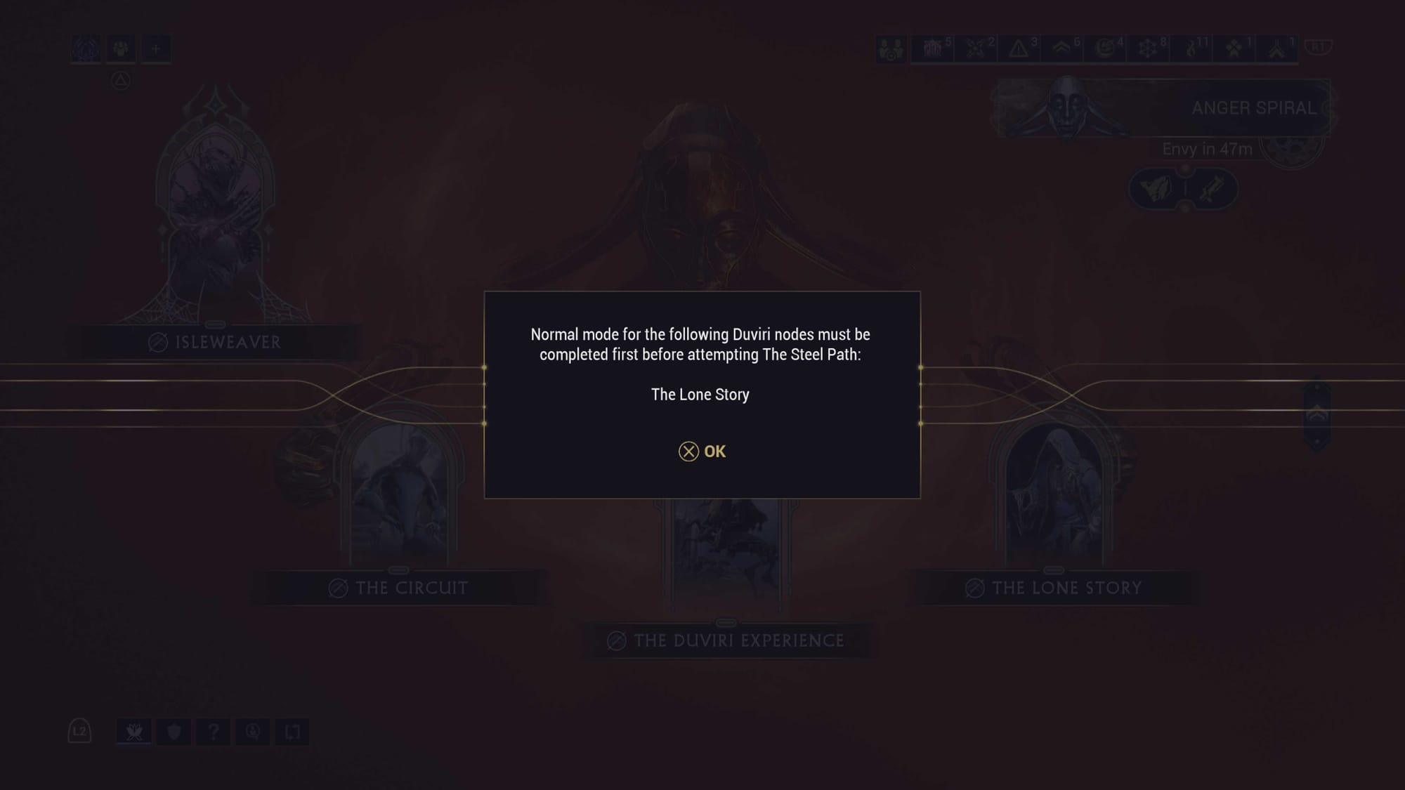 Trying to get to the Steel Path version of The Circuit. Missed Saya's Vision quest for the Star Chart. Now I'm still missing The Lone Story for the Duviri's side.